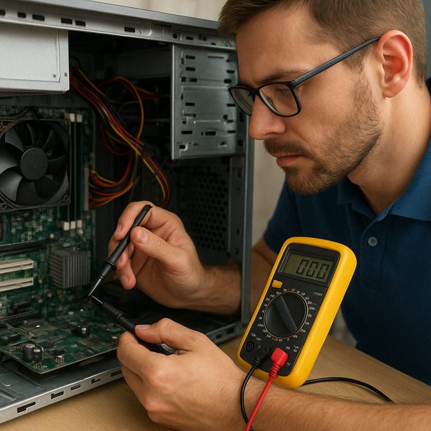 • Karta graficzna i inne karty rozszerzeń – testy obciążeniowe, kontrola temperatury i sygnałów wyjściowych na monitorze.